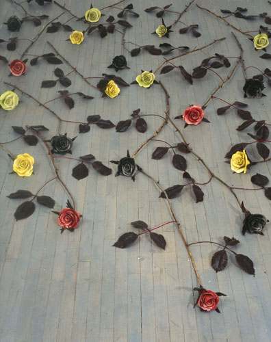porcelain, wood and wax, each flower and stem approximately 1 m in length