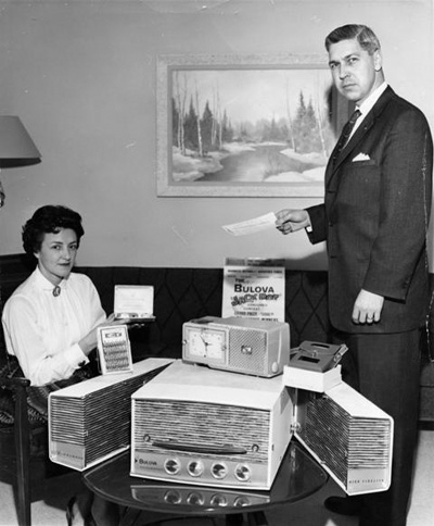Fig. 6 - Armstrong Jewellers Bulova Watch Give Away, Cliff Armstrong and winner (1952)